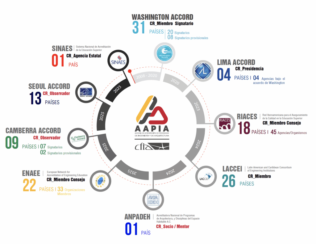 La AAPIA se integra como miembro y participa en acuerdos de cooperación en redes de agencias de acreditación, en convenios nacionales e internacionales, y en comisiones y grupos de trabajo establecidos para el aseguramiento de la calidad en el ámbito académico. Gracias a estos alcances, la agencia internacional ha logrado incorporarse a una serie de redes internacionales que han permitido la internacionalización mediante acuerdos, convenios de alianza y evaluaciones rigurosas que permiten que la organización goce de un prestigio y reconocimiento mundial.